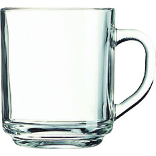 The 8 1/2 oz mug is ideal for hot beverages. Its classic design and easy-to-hold handle make it perfect. Tempered for serving hot drinks and enhanced durability