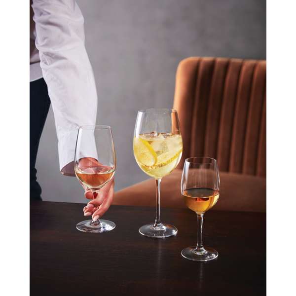 The Tall Wine 25 1/4 oz glass is designed to enhance the enjoyment of robust wines that benefit from extra aeration. Its large capacity and elegant design provide ample space for the wine to breathe, enriching its aroma and flavor. Crafted from premium Krysta material, this glass is resistant to chipping and breaking, ensuring long-lasting use. Its sophisticated appearance makes it a perfect choice for settings ranging from fine dining to upscale casual, elevating the overall wine drinking experience.
