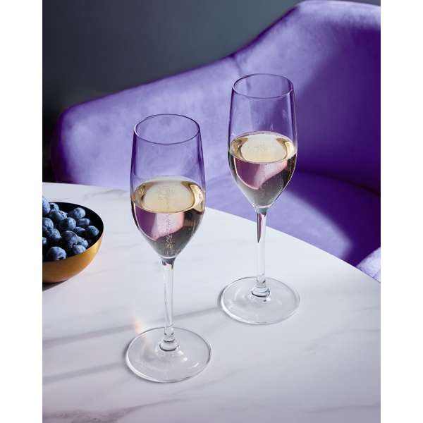 Refined 6.25 oz flute glass for sparkling wines, designed to maintain bubbles and enhance aroma.